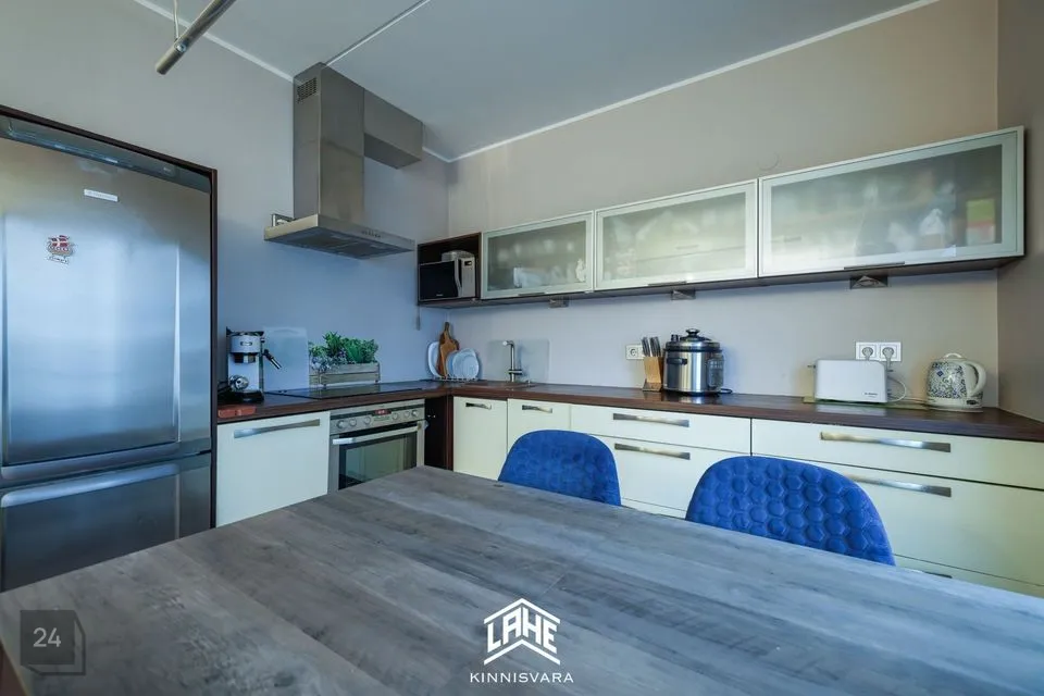 Köögimööbel ja -tehnika on kvaliteetne ja hästi hoitud – olemas on külmik, elektripliit, ahi, nõudepesumasin ja õhupuhasti.