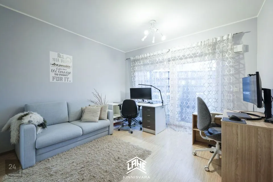 Lisaks on korteris ruumikas vannituba. Planeering on läbimõeldud ja funktsionaalne, toad on suured ning annavad piisavalt ruumi nii pereeluks kui kodukontoriks. Õhtupäike paistab elutuppa, lisades päeva lõppu mõnusat soojust ja valgust.