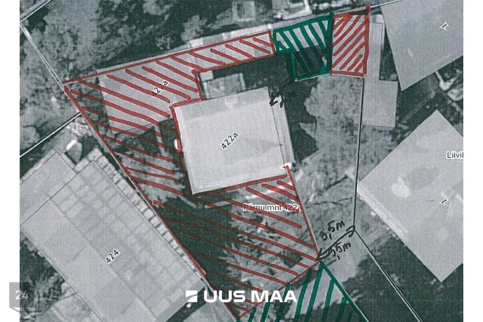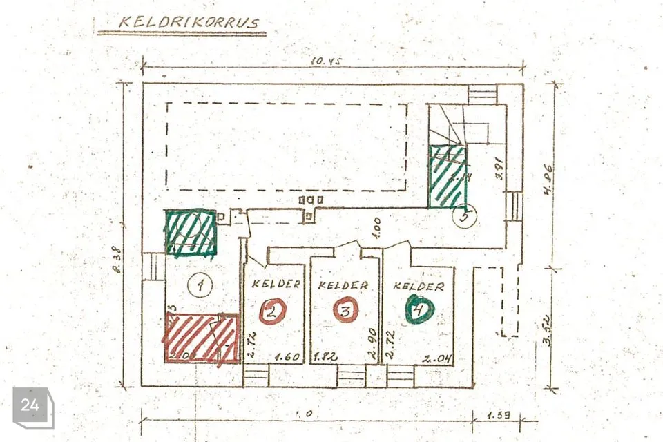 Tegu on kinnisasja mõttelise osaga 2/3 kaasomandist. Kinnistu suuruseks on 652 m2, millest vara igakordsete omanike ainukasutuses ja -valduses on ca 300 m2 (Maa- ja Ruumiameti maainfo kaardilt mõõdetuna). Vastavalt notariaalse kasutuskorra kokkuleppele jäävad omaniku ainuvaldusesse ja -kasutusse keldrikorrusel asuvad ruumid, mis on tähistatud punase joonega, esimese korruse eluruumid ja osa maatükist, mis on piiritletud punase joonega (vt jooniseid piltide alt). Vastavalt kokkuleppele on sissesõidutee ja pööningukorrus kaasomanike ühiskasutuses.