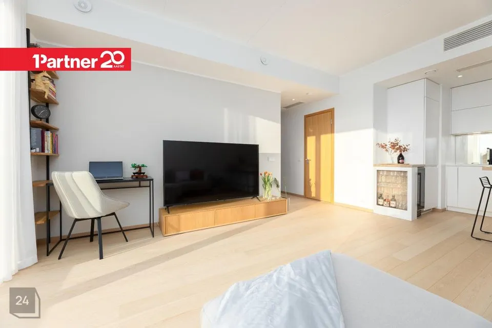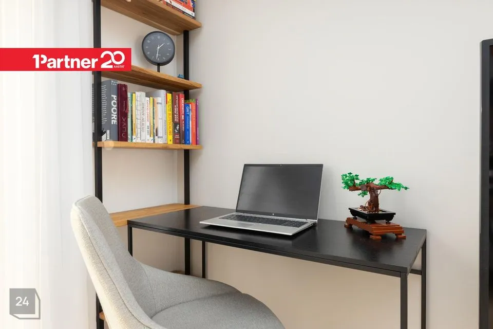 * Elutoas on juba olemas integreeritud kodukontori ala, mis on lahendatud kvaliteetsete disainriiulite ja mugava töölaua paigutusega.