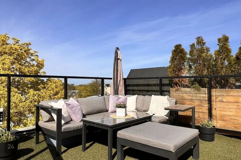 See on 2-toaliste puhul tõeline haruldus – ideaalne päevitamiseks, grillimiseks, töötamiseks värskes õhus või lihtsalt päikeseloojangute nautimiseks. Terrass loob täiesti omaette ruumi, mis annab korterile väikese eramaja tunde.