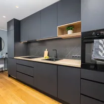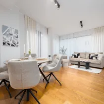 Korteris on kasutatud kvaliteetseid materjale: eluruumides naturaalne parkett, esikus ja sanitaarruumis keraamilised plaadid. Hele ja stiilne värvilahendus loob avara, puhta ja hubase tunde. Köögis on kaasaegne mööbel koos integreeritud tehnikaga.
