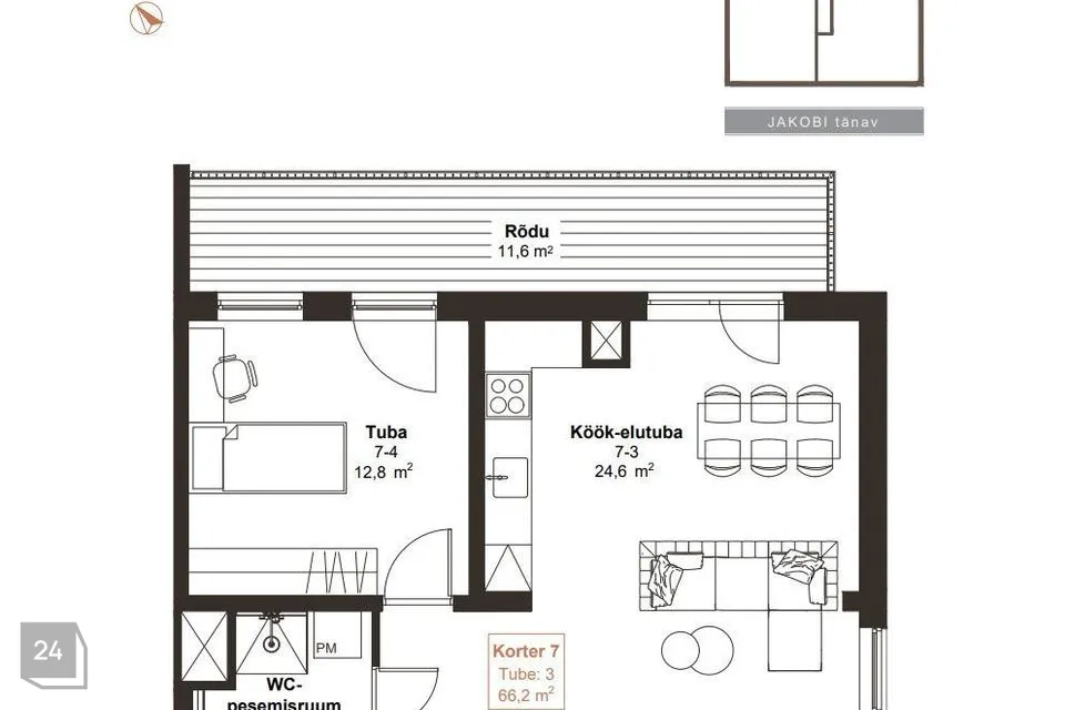 66,2 m² suurune valgusküllane 3-toaline korter + 11,6 m² TERRASS