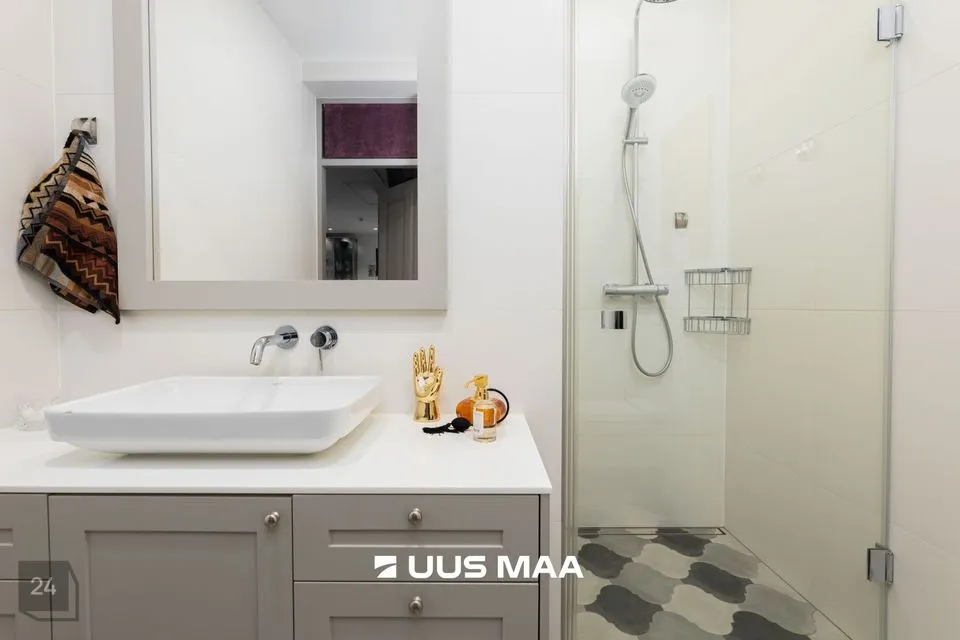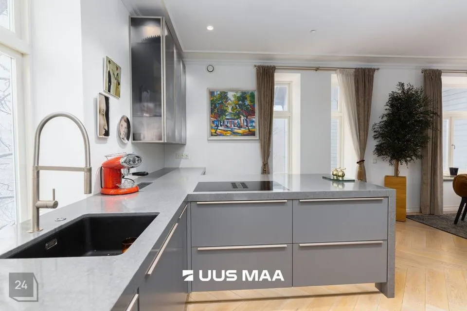 Kogu korteri siseviimistlus ning materjalid on hoolikalt valitud, kõik aknalauad on valmistatud marmorist. Naturaalne kalasaba parkett lisab korterisse avarust ning soojust.