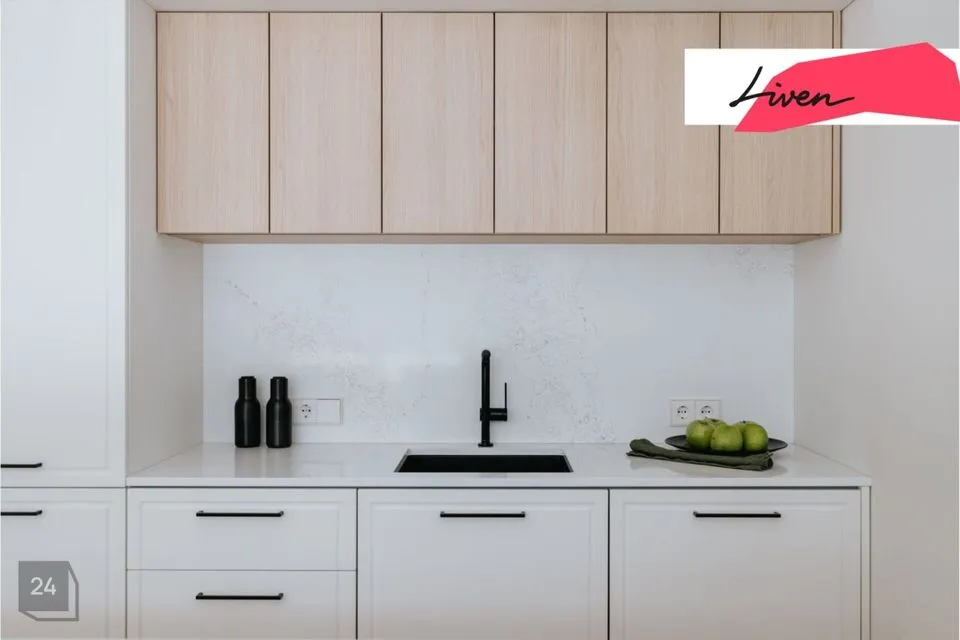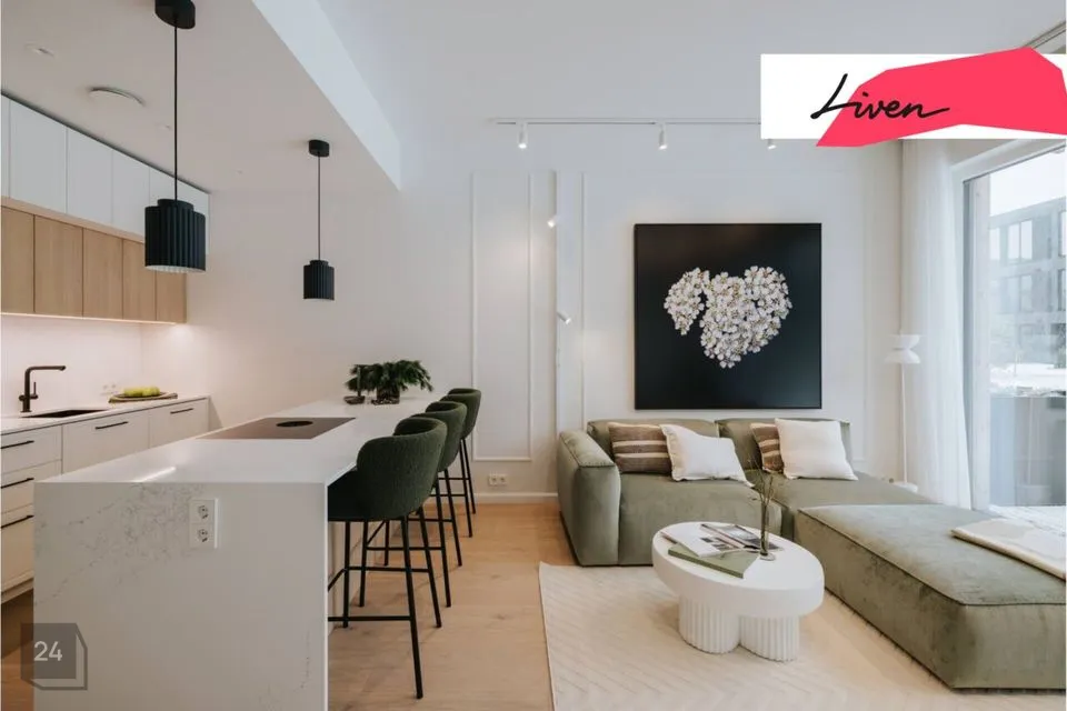 Suure terrassiga stiilne kodu puhtades toonides, mille avar elutuba-köök on juba osaliselt sisustatud. Funktsionaalne ja läbimõeldud köök on varustatud sisseehitatud tehnikaga ning seda täiendab praktiline köögisaar, mis sobib ideaalselt nii igapäevaseks kasutamiseks kui ka külaliste võõrustamiseks.