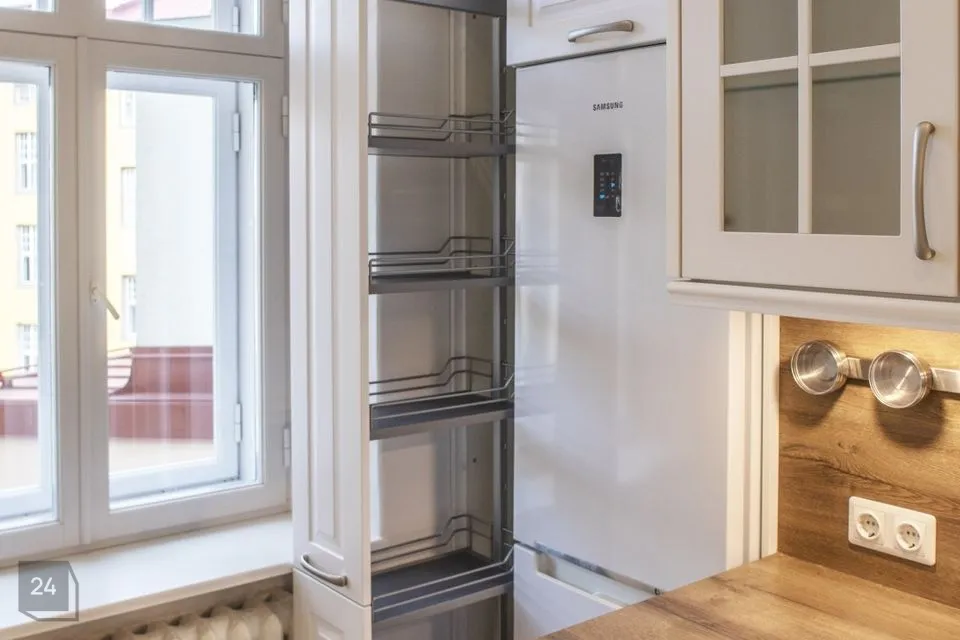 Köögis ja koridoris on sisseehitatud kapid, köögis olemas uus köögitehnika.