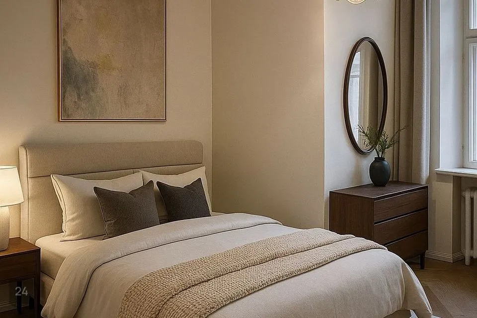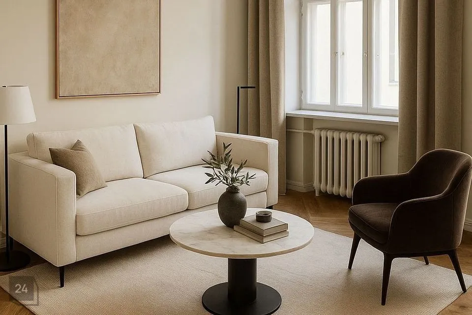 Kaks sisustatud mööbliga pilti elutoast ja magamistoast on kujunduslikud.