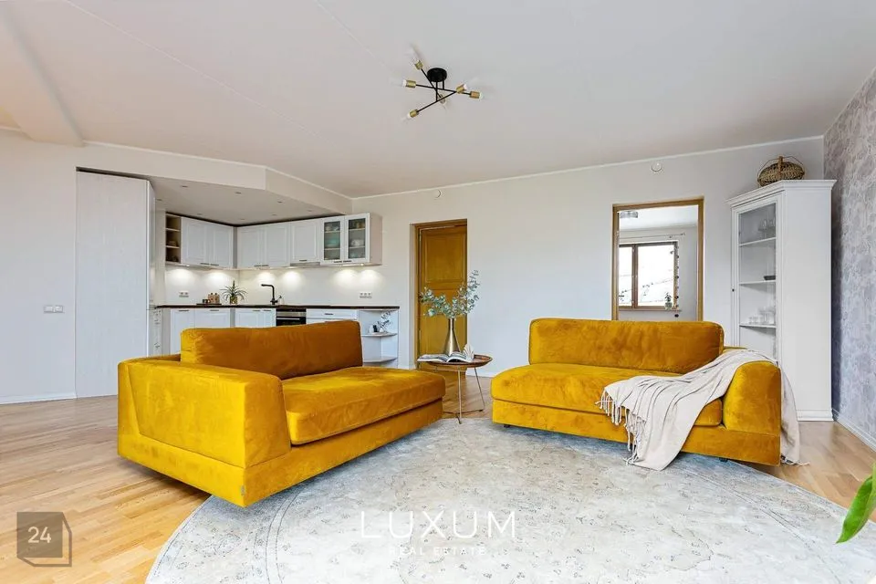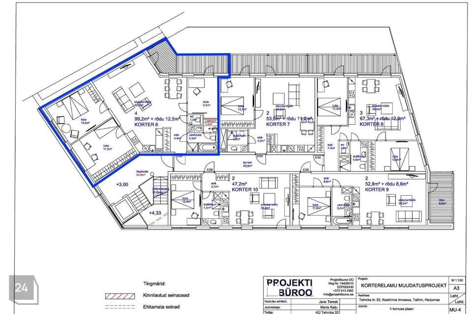 Korteri üldpind on 99.2 m², millele lisandub 12.5 m² sisehoovi poolne terrass