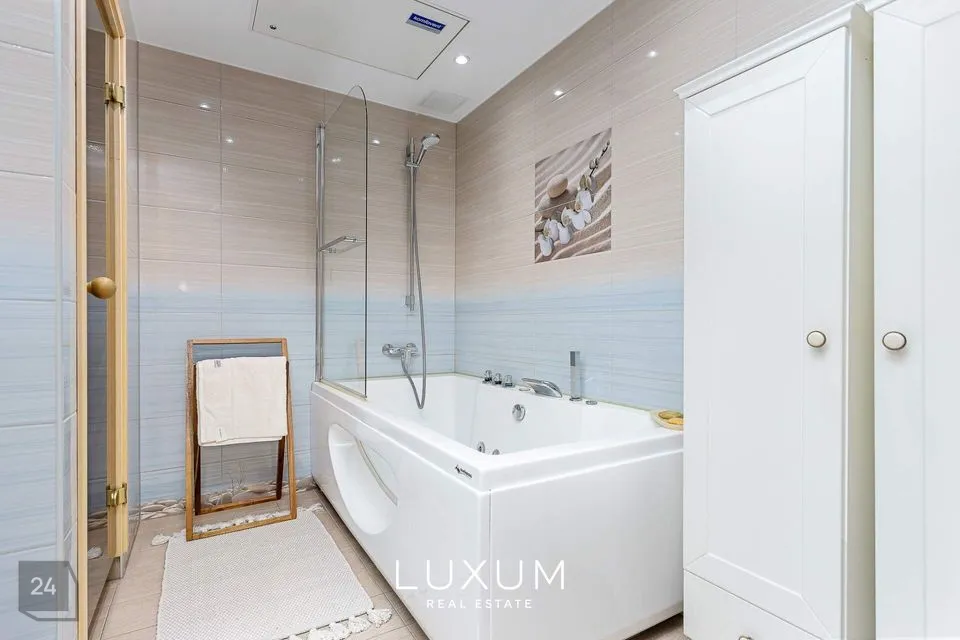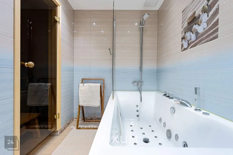 Vannitoas on kahele inimesele mõeldud massaaži funktsiooni ja LED-valgustusega mullivann, mis annab hubase spaa tunde.