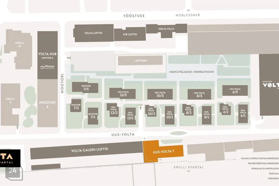 Volta Galerii Loftide kodud pakuvad ühtaegu eksklusiivset siseviimistlust ja kvaliteetset elukeskkonda, olles suurepäraselt ühendatud Tallinna südalinna ning trendikate Noblessneri ja Krulli kvartalitega. Volta kvartal on arendatud 15-minuti linna põhimõttel, mis tagab, et kõik eluks vajalik on siit vaid lühikese jalutuskäigu või rattasõidu kaugusel. Sinu kodukvartalis on äsja avatud uus padelikeskus ning 2026 aasta alguses avab uksed MyFitness spordiklubi! Volta kvartalis pooldame turvalise ja salliva kogukonna teket – lisaks eestlastele on siin kodu leidnud paljud välismaalased ja oodatud on kõik neljajalgsed sõbrad!