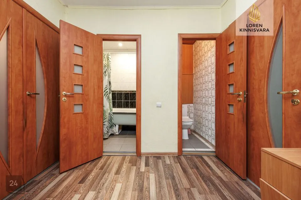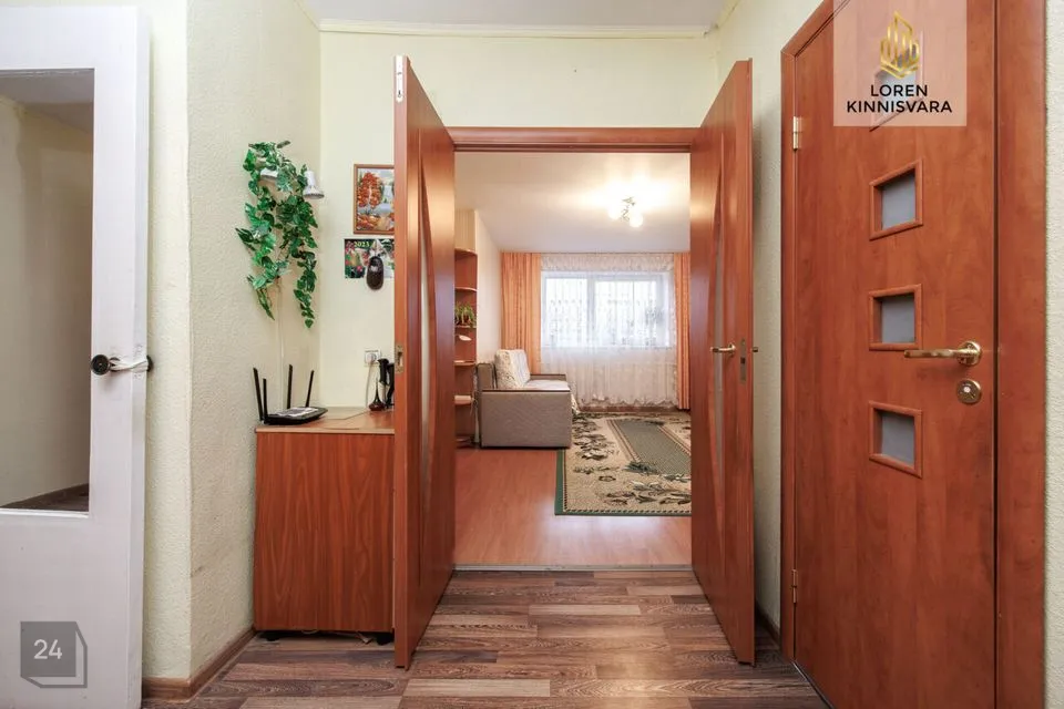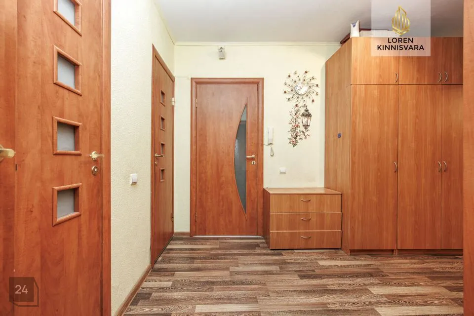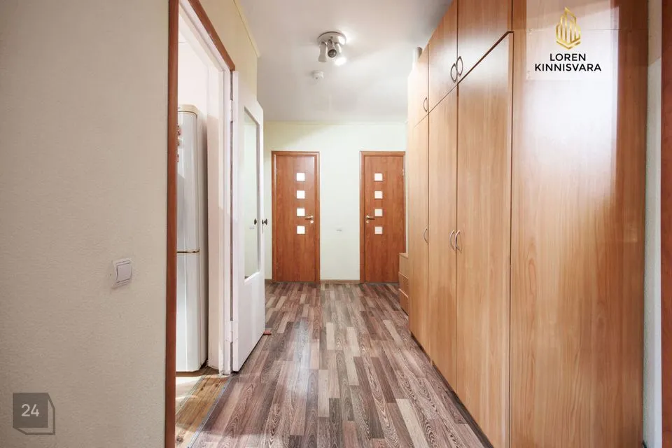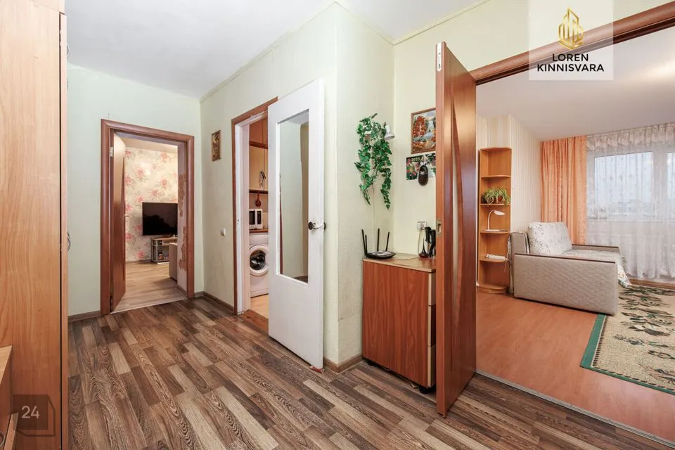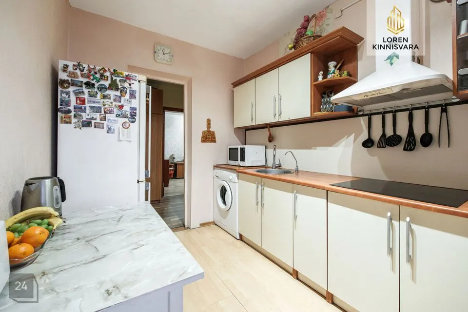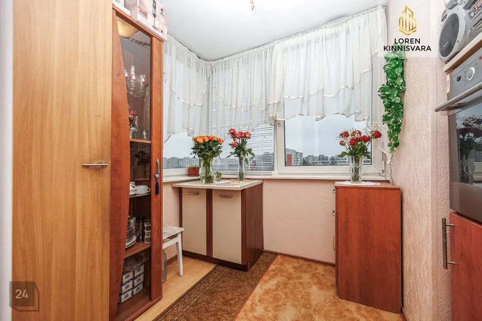 Müüa mugava planeeringuga, hubane 3-toaline korter. Korter paikneb 9-korruselise kortermaja 5 korrusel. Korteris asuvad esik, köök, elutuba, 2 magamistoad, vannituba ja wc. Kõik toad asetsevad eraldi, mis teeb elamise mugavaks. Korterisse sisenedes satute esikusse, kuhu saab jätta jalatsid ja üleriided. Järgnevalt asub avar elutuba. Täielikult sisustatud köögis on olemas kõik mugavaks toiduvalmistamiseks. Köögimööbel koos tehnikaga (külmkapp, elektripliit, ahi, õhupuhasti). Köögist on pääs klaasitud rõdule. Magamistoas on garderoobikapp, diivan ja laud. Tubades on tapeeditud seinad, pinglagi, põrandal naturaalne laminaatparkett ja pakettaknad. Vannitoas ja wc kasutatud keraamilist plaati, vahetatud vee ja kanalisatsioonitorustik. Hea planeeringuga korter on täis loomulikku valgust ja päikesepaistet. Korterisse paistab hommiku-, lõuna päike (köögis, elutoas ja magamistoas) kui ka õhtupäike (teises magamistoas).