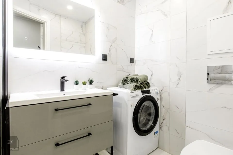 -Kaasaegne vannituba – dušilahendus ning pesumasin.