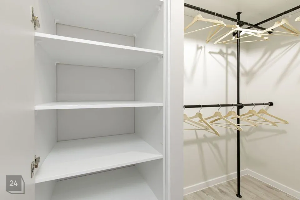 -Magamistoas asub mahukas walk-in garderoob, mis pakub rohkelt hoiuruumi.
