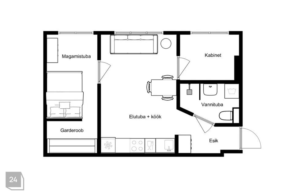 -Lisaks on olemas eraldi kabinet/abiruum suurusega 5,2 m², mis sobib ideaalselt kodukontoriks, hobitoaks ning on soovi korral lihtsasti kohandatav ka lapsetoaks.