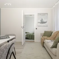 -Korter on täielikult renoveeritud – sisekujunduses on rõhku pandud valgusele, avarusele ja funktsionaalsusele.