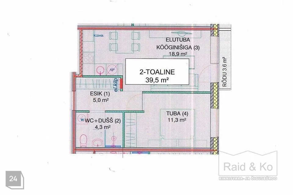 Korterisse jääb kogu sisseehitatud mööbel ja tehnika, muu mööbel kokkuleppel.