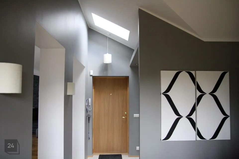 - Sissepääsu juures avarust lisav kõrgete peegeluste ja lisavalgustusega garderoob. Kapi vasakus osas on tehnokeskus (elektrikilp, interneti-, TV- ja telefoniühenduste koht, valvesüsteemi keskus).