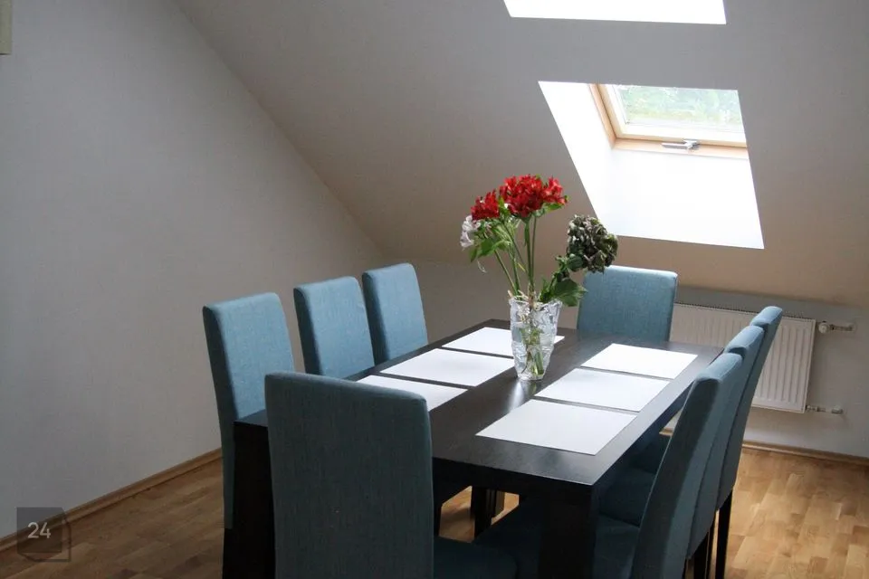 - Korteri üldpind katusekallete tõttu 71,9 m2, põrandapinda aga üle 85 m2, köetav pind 69 m2.