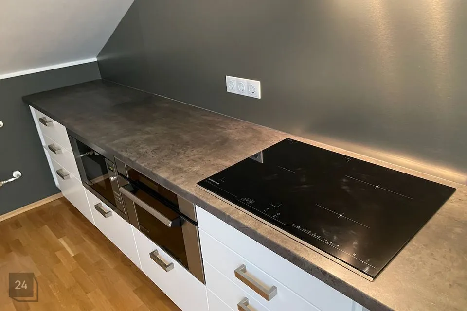 - Arensi sisseehitatud köögimööbel koos kõrgkvaliteetse tehnikaga. Hiljem juurde ehitatud köögimööbli pikendus, et veelgi rohkem asju mahutada.