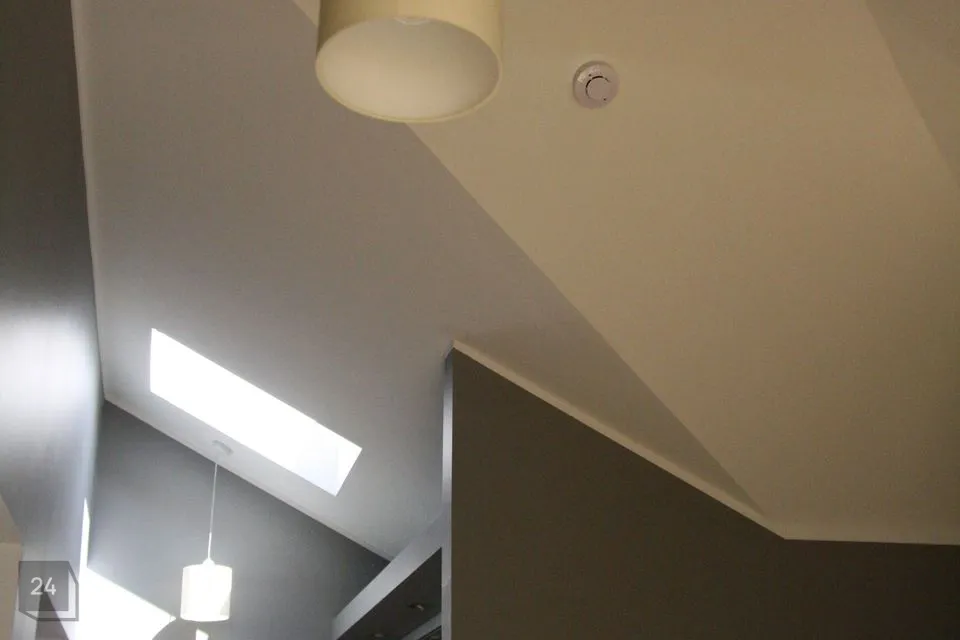 - Keskmisest osast sissepääs kööki, kuid samas ruumi ka raamaturiiuli või kapi jaoks. Seda osa iseloomustab keerulise struktuuriga mitmetahuline lagi. Riiul kuulub hinna sisse.