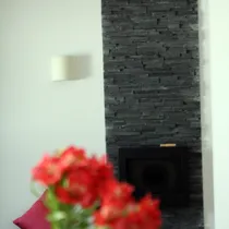 - Ühes seinas dekoratiivkivid koos biokaminaga. Vahva sisekujunduselement, mis tegelikult annab ka ilu ja soojust.