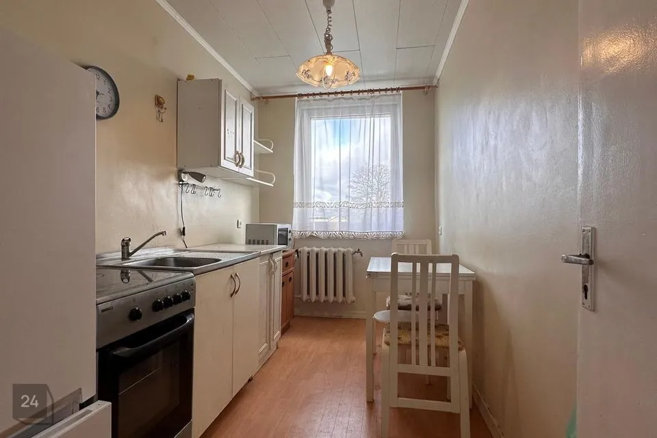 Korter asub kolme korrulise maja kolmandal korrusel. korteri üldpind on 42,40m2. Kõik toad on eraldi, läbi maja planeeringuga. Magamistuba, elutuba, köök ja wc-vannituba. Elutuba on avar ja valgusküllane. Pisike köök loob võimaluse, et kõik vajalik oleks käe-jala juures.