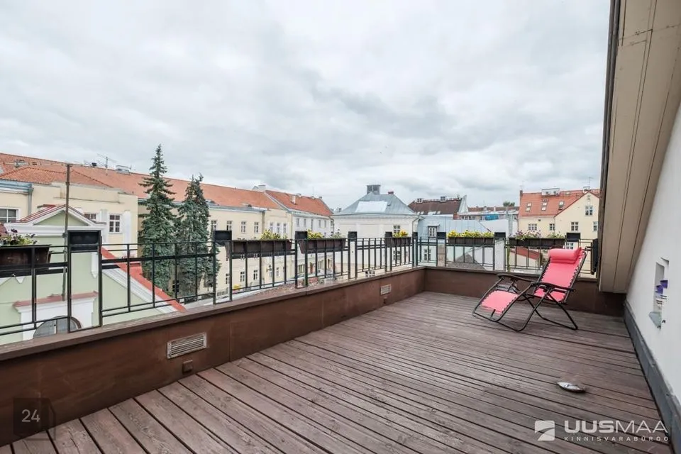 Korter asub elamu viimasel korrusel ja selle suurelt katuseterrassilt avanevad kaunid vaated linnale.