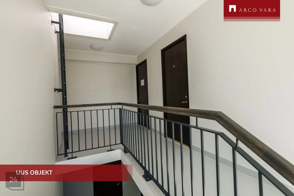 Maja välisuksed on alumiiniumraamides ja klaaspaketiga; korterite uksed EI 30 puidust.