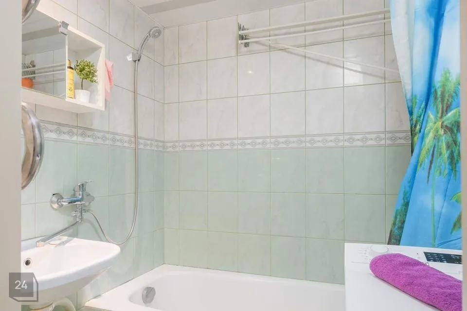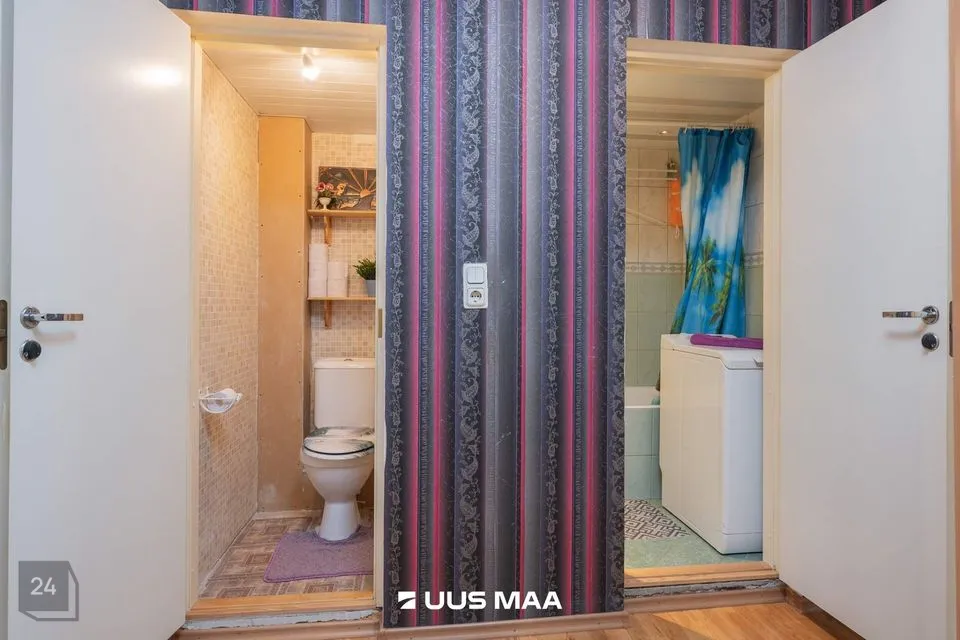 Vannituba ja tualettruum asetsevad eraldi. Seinu katavad keraamilised plaadid.