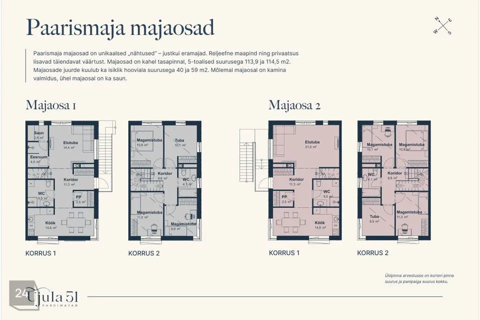 UUSARENDUS KOOSNEB KAHEST MAJAST UJULA TN 51/1 KORTERMAJA, KUS 11 KORTERIT NING SISEHOOVI KORTERMAJA UJULA 51/2, KUS 2 KORTERIT.