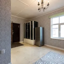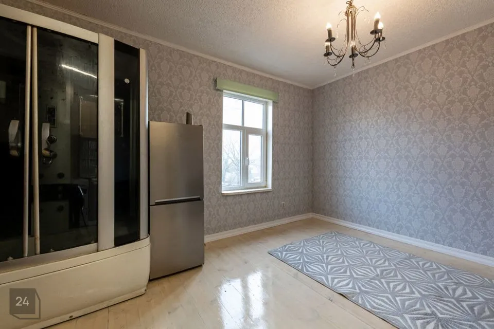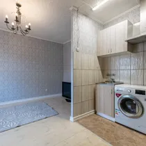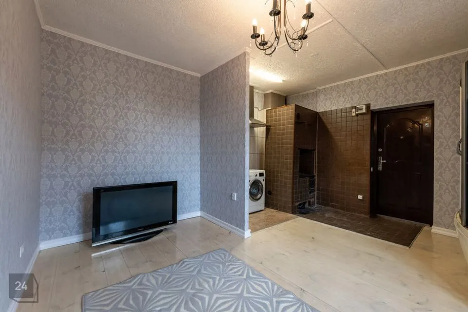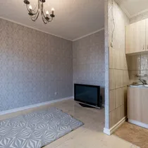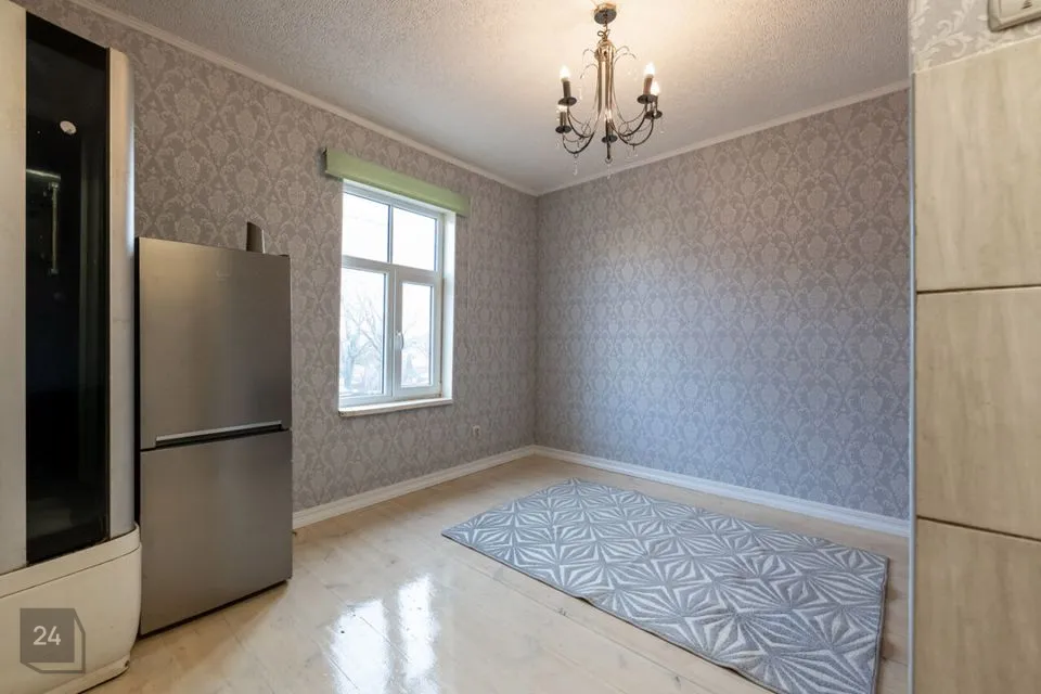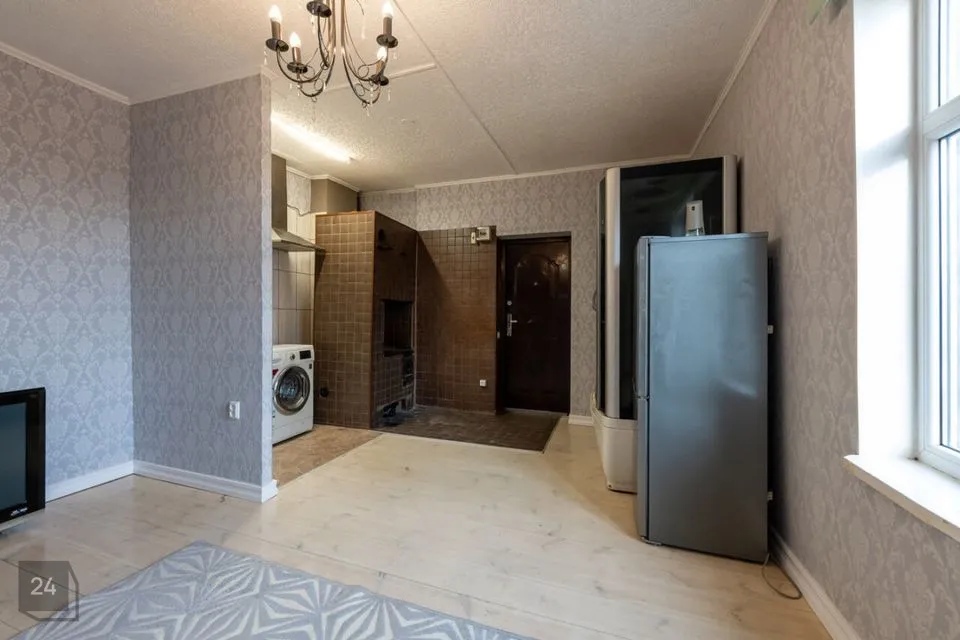 Korter-kööktuba on ahiküttega, üldpind 17,6 m², suur aken tänava poole.