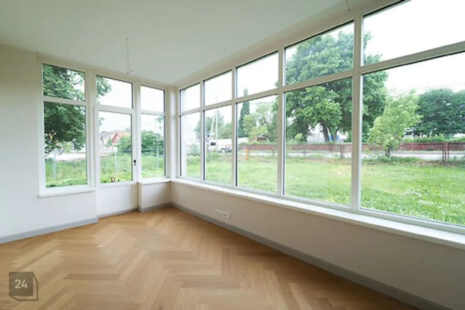 Põrandat katab kvaliteetne puitparkett. Seinad on krohvitud ja värvitud heledates toonides. Vannitoas seintel ja põrandal keraamilised plaadid. Aknad eritellimusel valmistatud puitaknad. Siseuksed tammespoon kattega sileuksed.