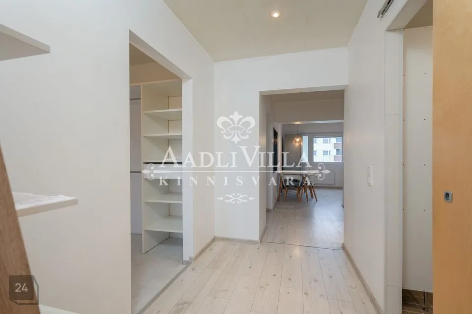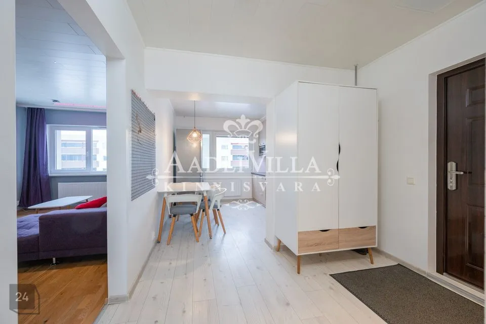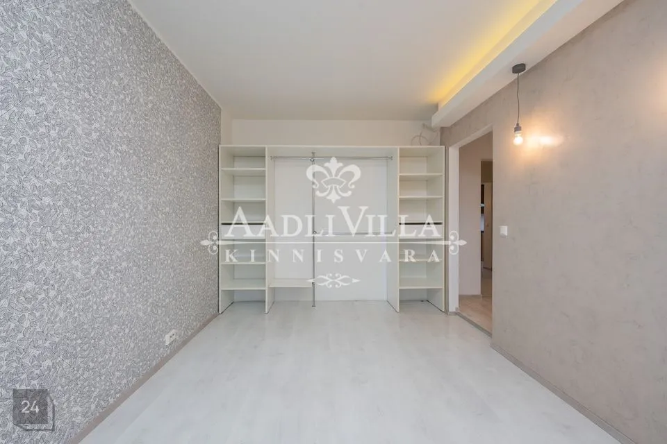 Müügihinnas: köögimööbel koos köögitehnikaga (pliit, praeahi, õhupuhasti, külmkapp, söögilaud ja toolid, diivan, TV laud, diivanilaud, kummut, magamistoa garderoobi süsteem, arvutilaud väikses toas, esiku riidekapp, pesumasin, vannitoa mööbel, aknakatted, valgustid.