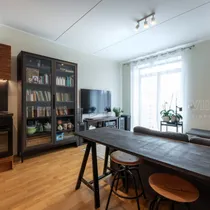 Müüdava korteri siseviimistlus on väga heas korras, domineerivad heledad toonid ja naturaalne puit. Seinad ja laed on värvitud, põrandatel naturaalne parkett. Korterile lisab iseloomu köögimööbli disain.