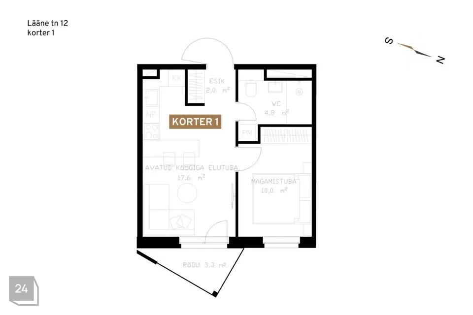 NB! Kuulutuse juurde lisatud pildid on sama planeeringuga Lääne 14-34 näidiskorterist.