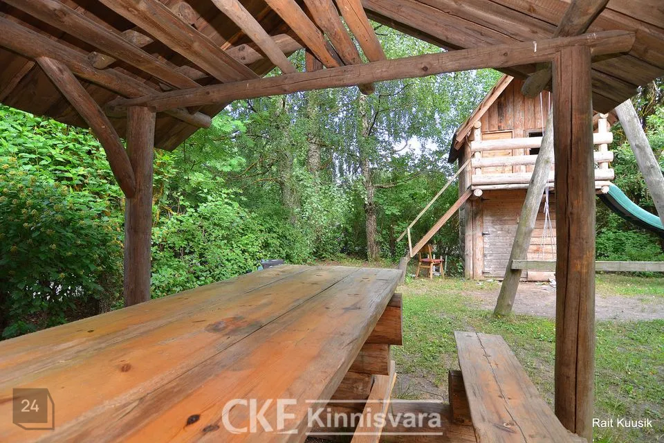 Väliterrasil asub väike panipaik. Maia ümber asuv õueala on aiaga piiratud. Kinnistu piiril kasvab kõrge hekk, mis muudab õueala privaatseks. Aias kasvavad õuna-ja pirnipuud. Lastele täispuidust mängumaja koos panipaigaga, kus saab hoiustada jalgrattaid jms.
