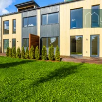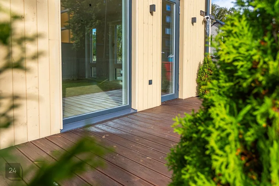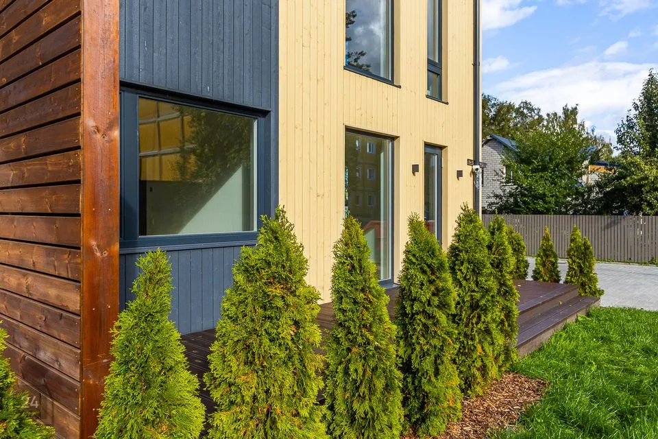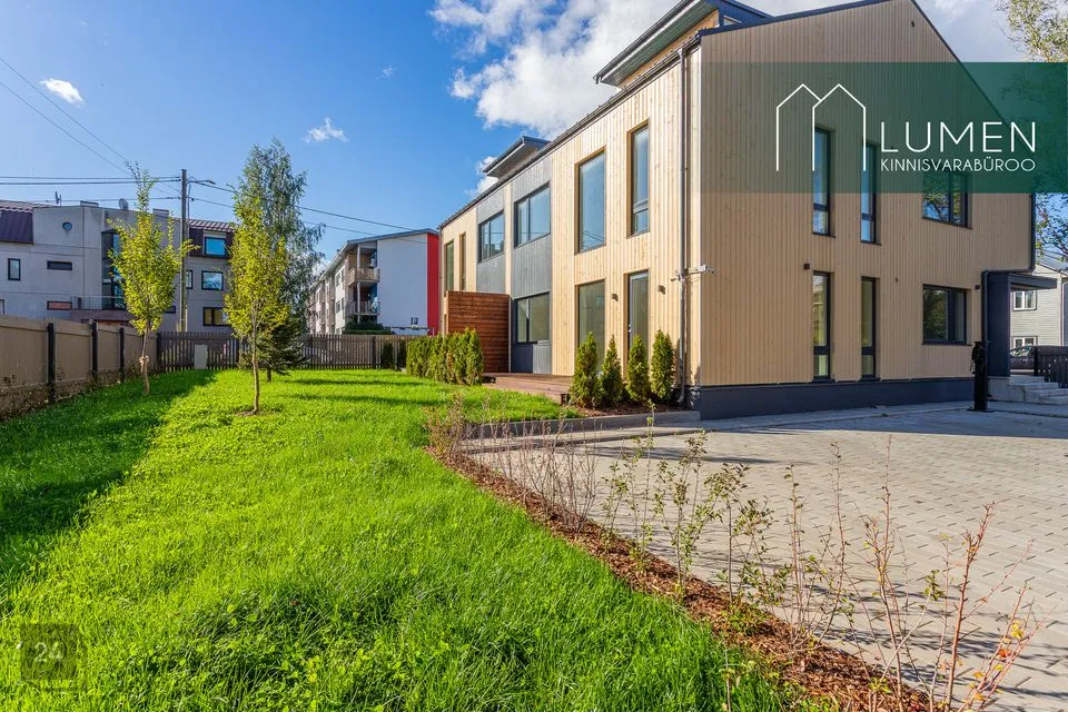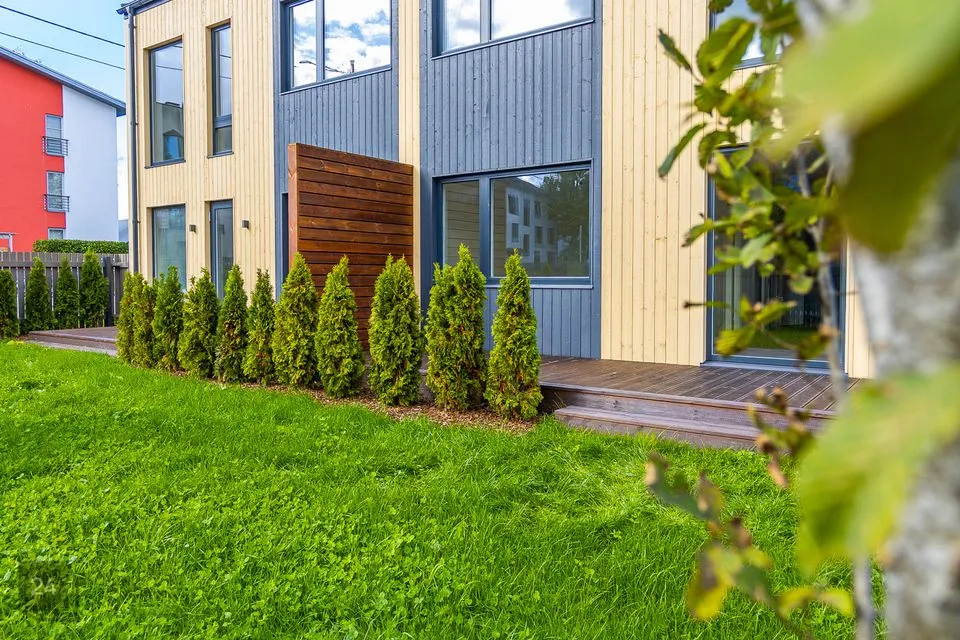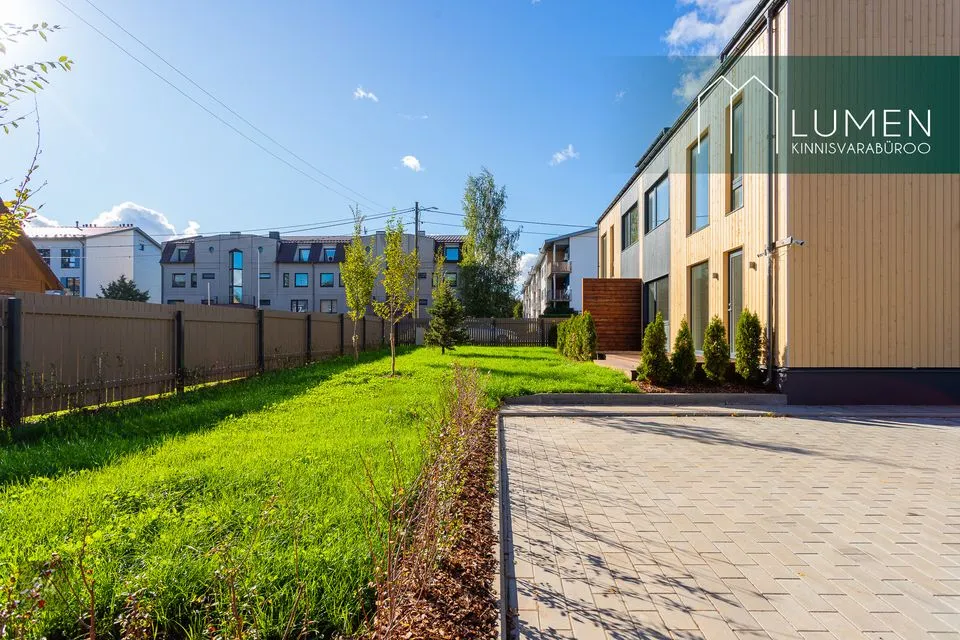 644 m² suurune kinnistu on piiratud puitaiaga. Haljasalale külvatakse muru ja istutatakse ilupuud koos hekiga. Siseõue ehitatakse lastele mänguväljak ja hoovi lisatakse rattahoidla. Parkimiskohtade ja kõnnitee alune maa on kaetud kiviparketiga. Värav avaneb automaatselt auto numbrimärgi järgi või telefonikõne peale. Samuti on parklas elektriauto laadimisvõimalus.