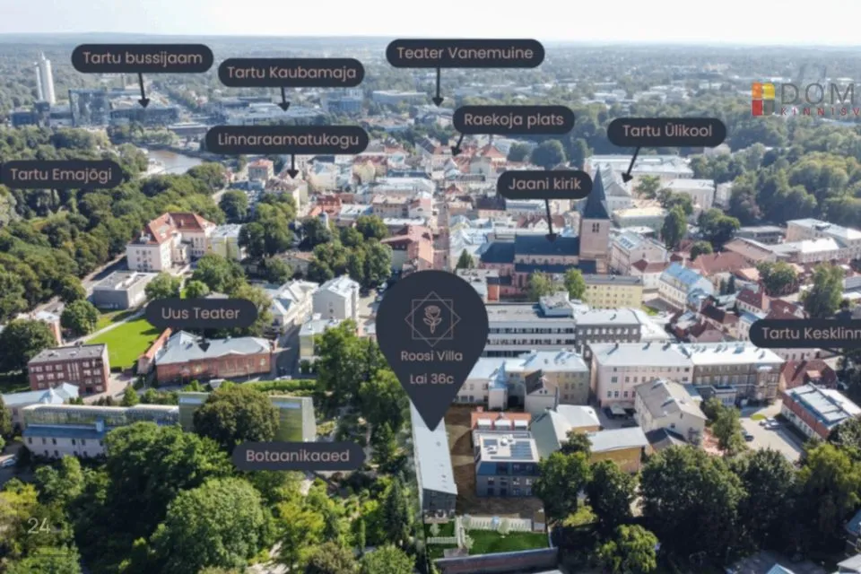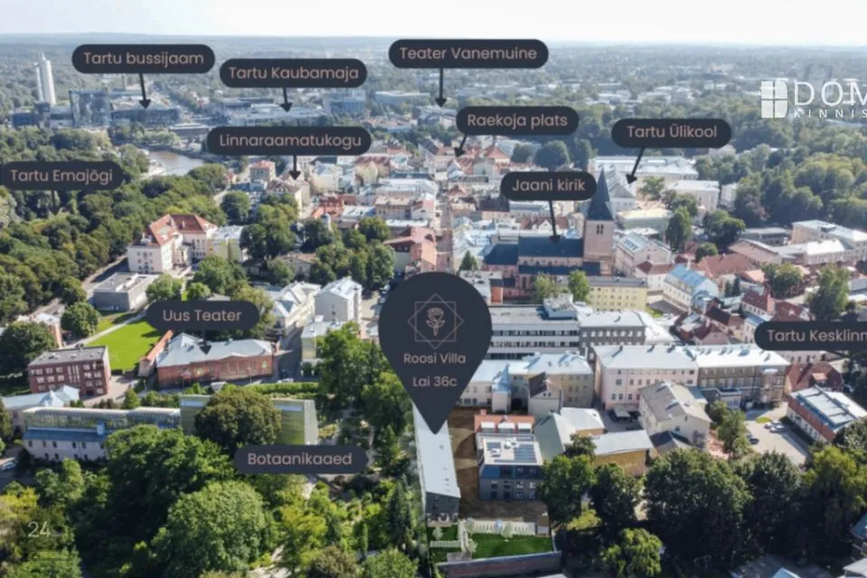 Tartu vanalinna külje all, aadressil Lai 36c, kerkib 2025. aasta sügisel unikaalne Roosi Villa. Siin põimuvad ajaloohõng ja modernne luksus. Muinsuskaitse all olev hoone rekonstrueeritakse, lisades sellele uue ja moodsa osa ning kaasaegse arhitektuuri – iga detail on hoolikalt läbimõeldud, et pakkuda stiilset ja mugavat elukeskkonda.