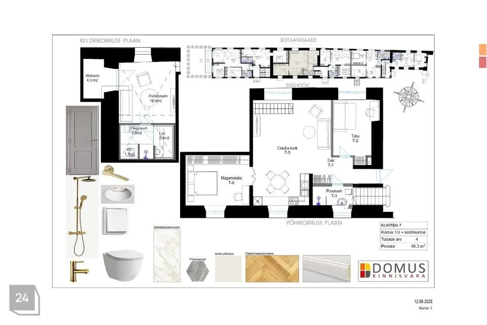 Korteris on 3 tuba, üldpind 96.3 m².