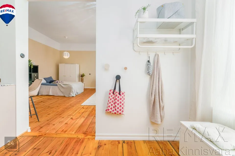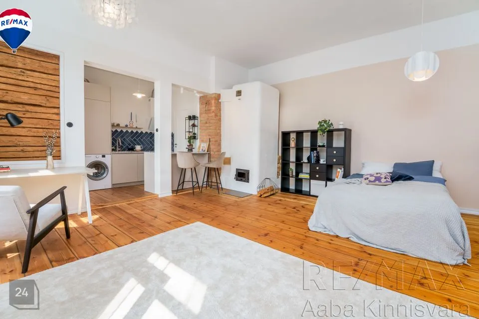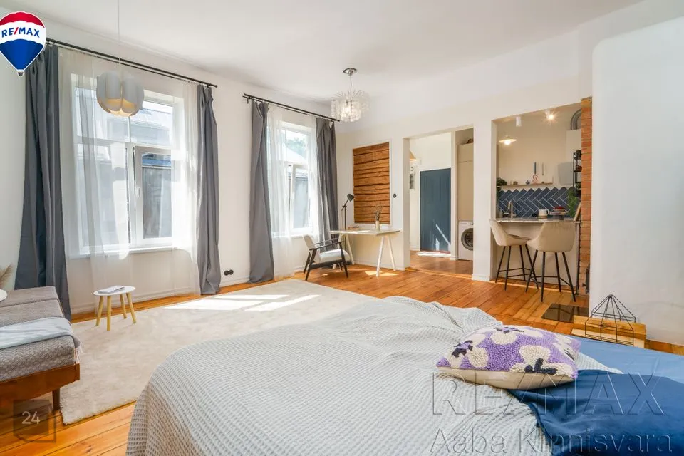 avatud köök-söögituba ja elutuba. Kuna suures elutoas on kaks akent, siis on võimalik ruumi nt kapiga eraldada või ehitada ka vahesein selliselt, et oleks täiesti eraldi magamistuba.