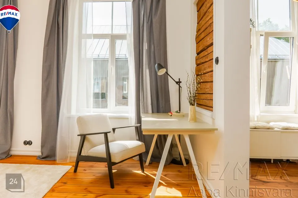 Korteri siseviimistlust on praeguse omaniku poolt alles hiljuti värskendatud. Sisekujunduse ja sisustuse valikul on kaasatud sisekujundaja. Kasutatud on heledaid toone, mis muudab korteri veelgi avaramaks. Säilitatud on vanad laudpõrandad, mis uuesti lihvitud ja õlitatud ning viimsitletud heas korras ja hästi sooja hoidev originaalahi, mis korstnapühkija poolt kontrollitud.