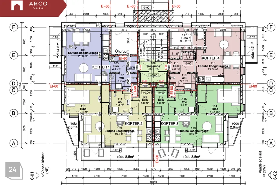 - Naturaalparkett eluruumides, esik ja duširuum plaaditud