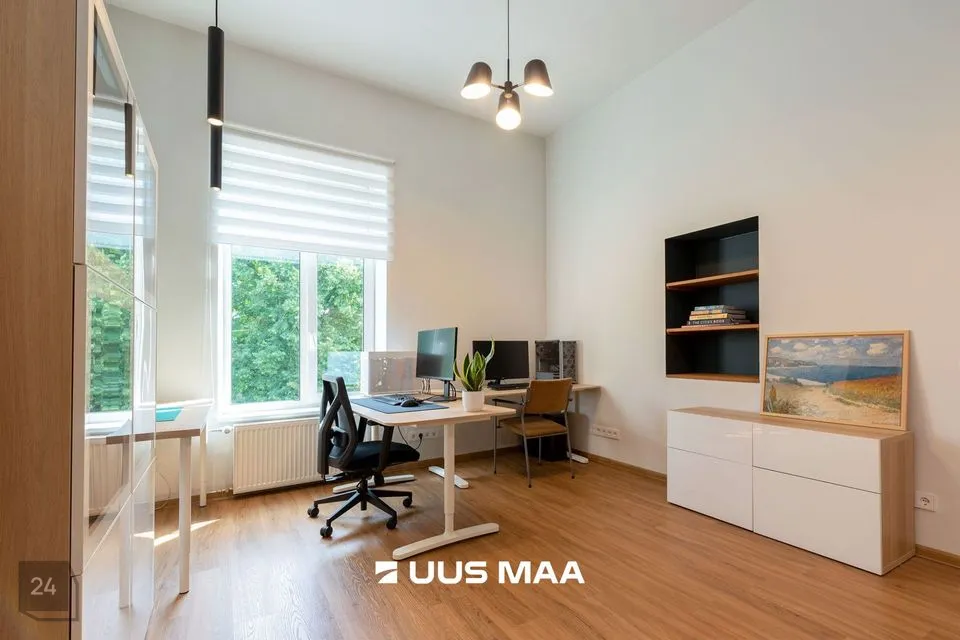 Kõrgete (3,50 m) lagedega, läbimaja planeeringuga kolmetoaline korter asub maja kolmandal korrusel. Korter on kvaliteetselt ja stiilselt renoveeritud aastal 2020. Iga detail selles kodus on loodud täiuslikkuse poole püüdlemisega – valgus, avarus, materjalid ja ruumid loovad koos unustamatu atmosfääri.