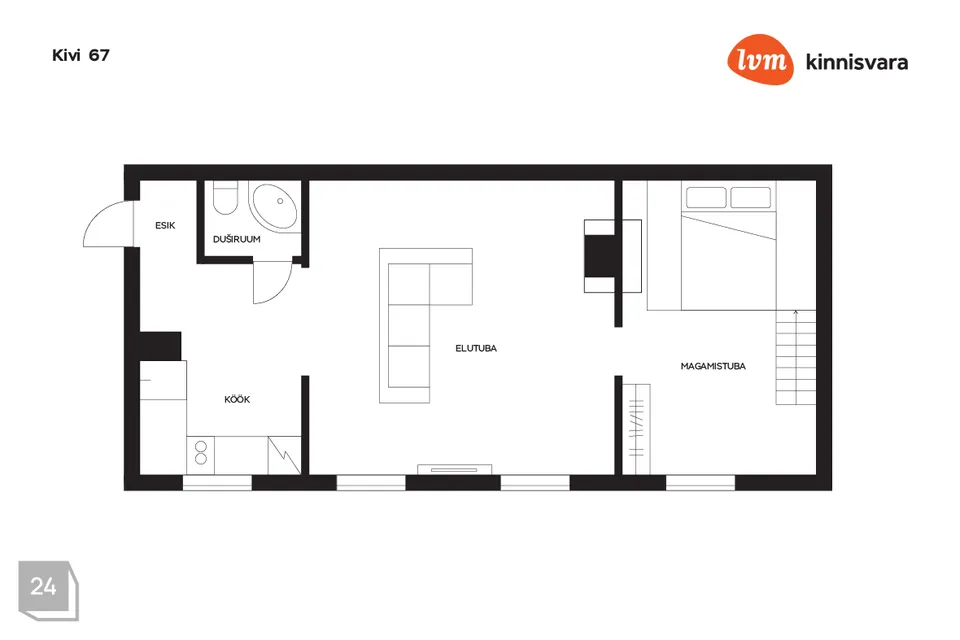 Korter asub kahekorruselise maja esimesel korrusel ning on üldpinnaga 46.5m2. Korteri koosseisu kuulub köök, elutuba, magamistuba ning vannituba.