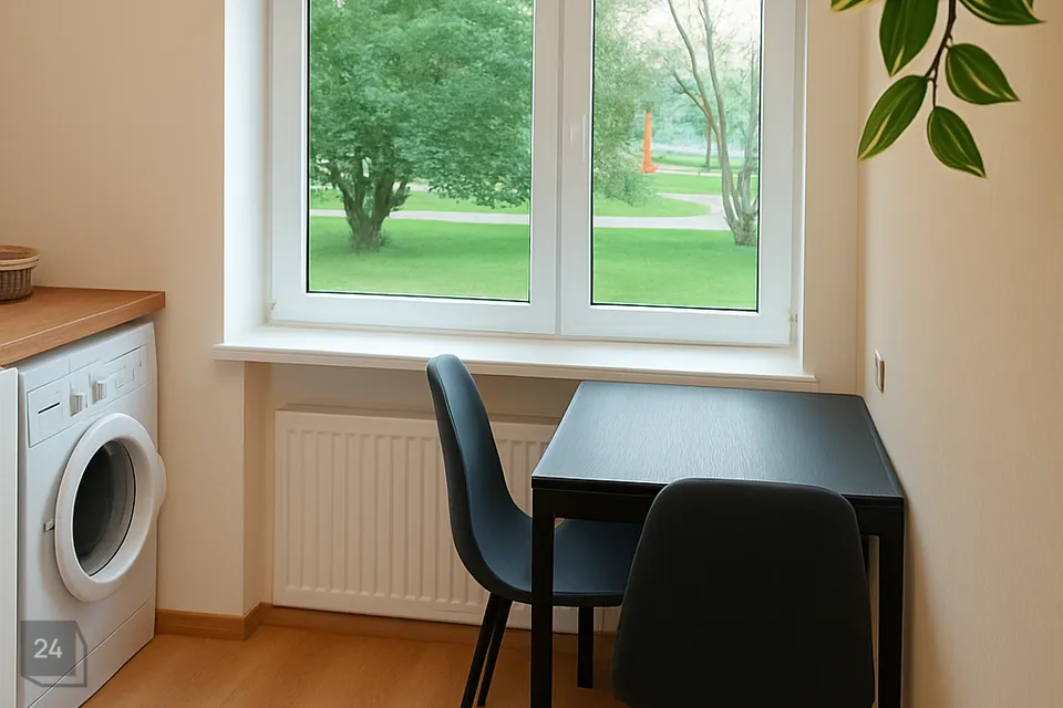 Korteri aknad avanevad rahulikule pargialale, tagatud on vaikus, rohelus ja privaatsus.