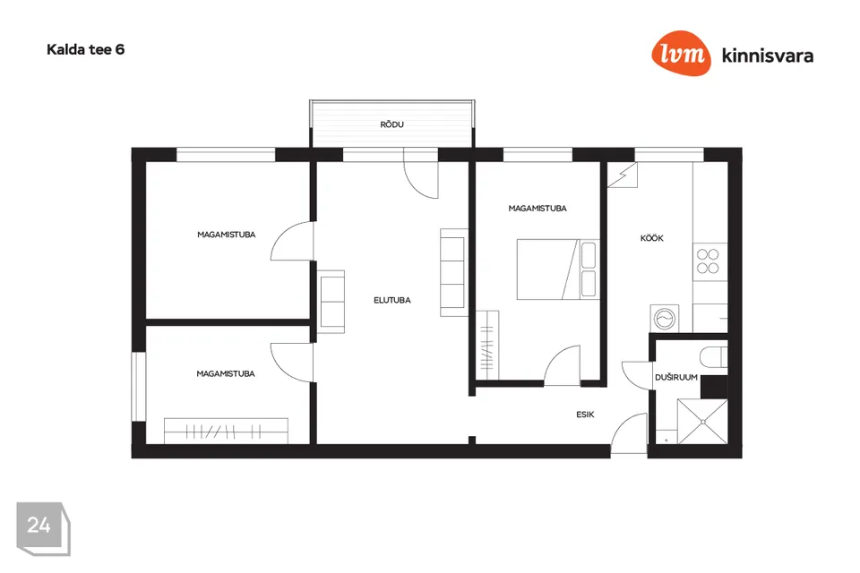 Korteri üldpinda on 59,1m2 ning selle koosseisu kuulub kolm magamistuba, köök, wc/vannituba ning elutuba, mis on läbikäidav. Lisaks on korteril ka klaasitud rõdu, kust avaneb vaade majatagusele rohealale ning mänguväljakule.