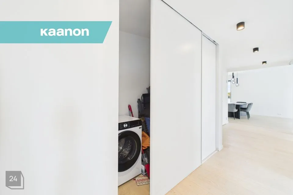 Koridori on nutikalt integreeritud ruumikas majapidamisnurk, mis on lükandukse taha peidetud. Sinna mahuvad pesumasin ning kõik vajalikud koduhooldus- ja hooajatarbed.