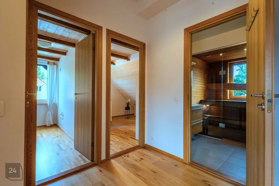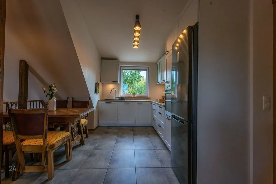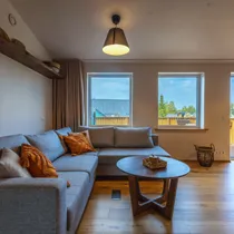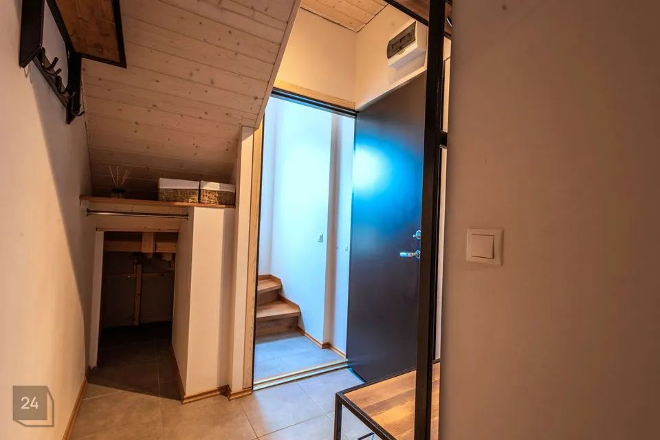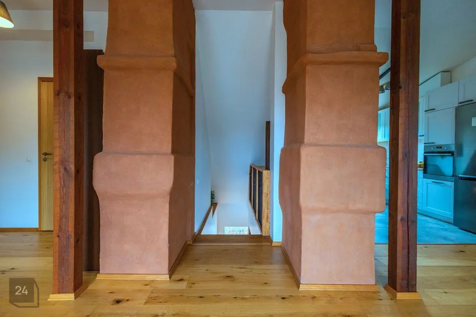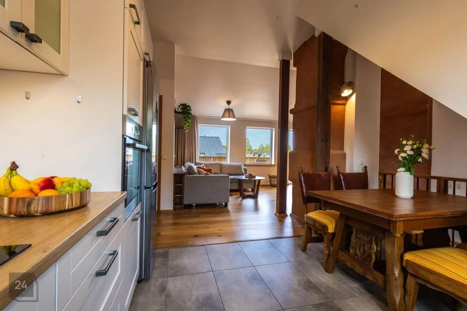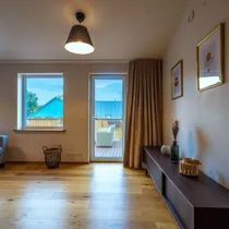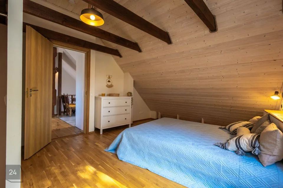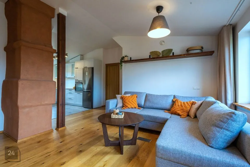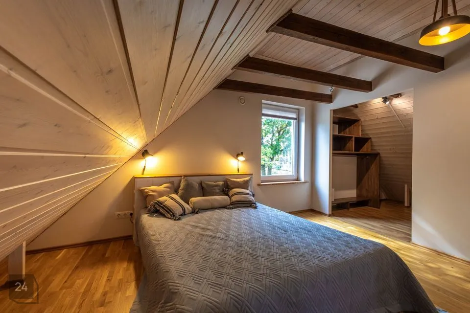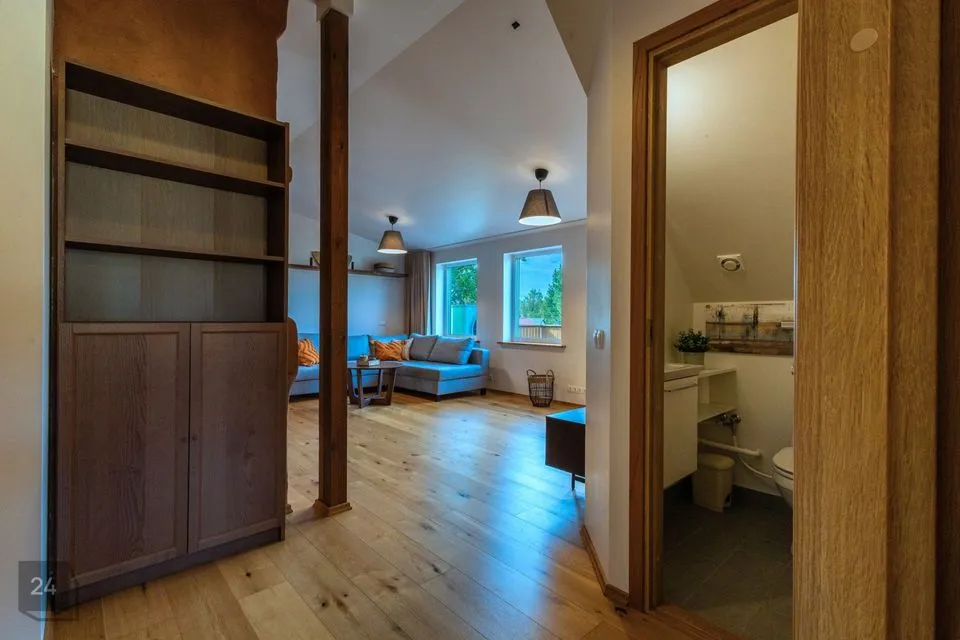 Korteri siseviimistlus sobib ideaalselt maja üldise olemusega ning on lahendatud maitsekalt, kasutades kvaliteetseid ja naturaalseid materjale. Tubades on naturaalne tammeparkett, köögi põrand on plaaditud. Seinad on värvitud ning kaldlagede viimistluses on kasutatud puitu. Duširuumi seinad ja põrand on kaetud keraamiliste plaatidega. Sooja ja energiatõhusa sisekliima loob vesipõrandaküte, mida kütab ökonoomne õhk-vesi soojuspump.