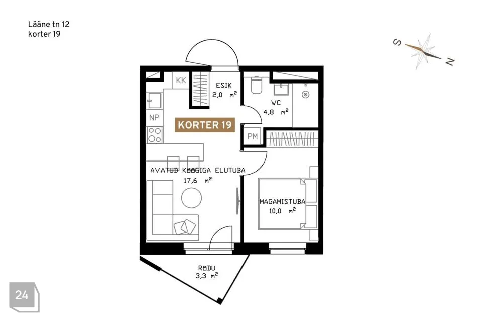 NB! Kuulutuse juurde lisatud pildid on sama planeeringuga Lääne 14-34 näidiskorterist.