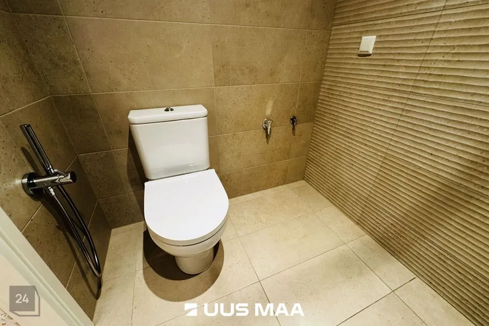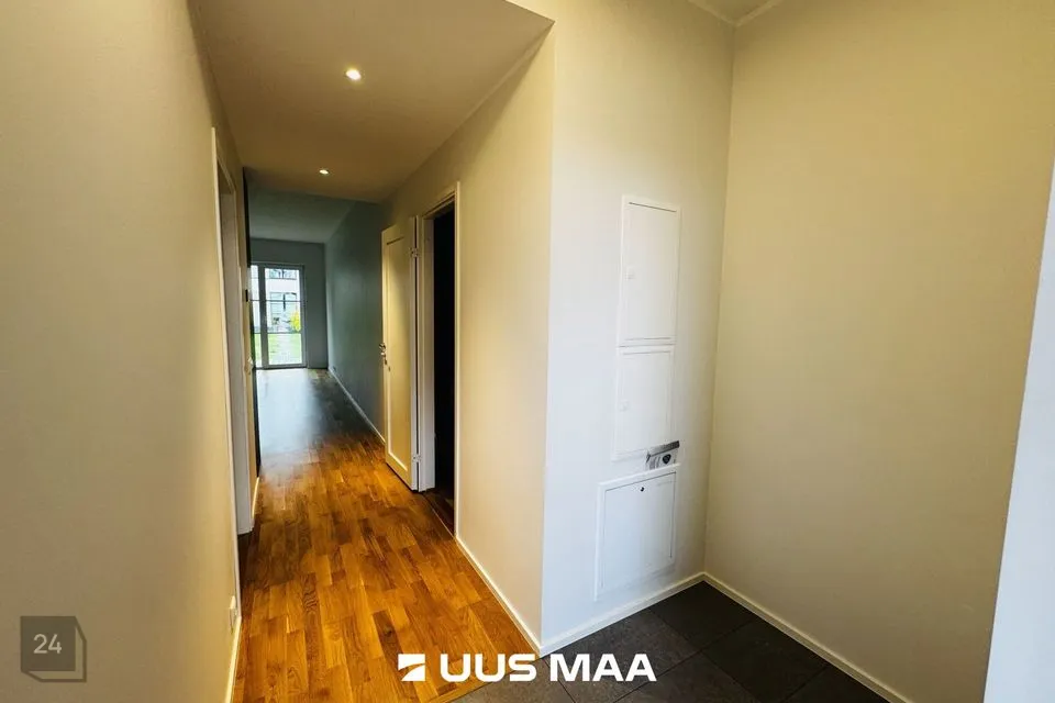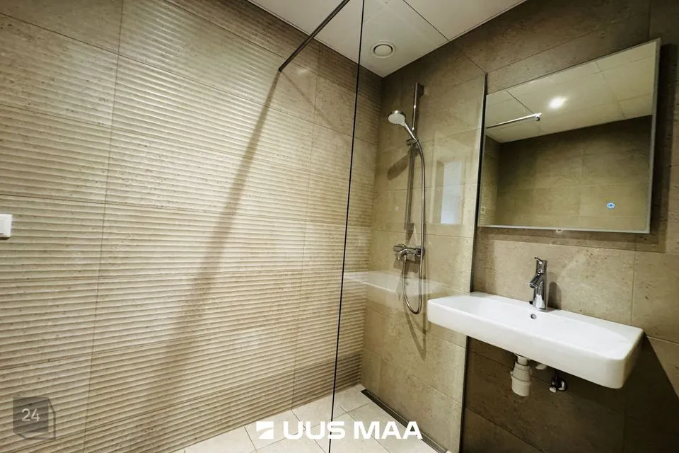 Tubade põrandaid katab naturaalne tammeparkett, vannituba ja esik on plaaditud, seinad heledates toonides. Korter on olnud minimaalses kasutuses ja väga hästi hoitud. Köögis on kvaliteetne köögimööbel koos sisseehitatud tehnikaga (nõudepesumasin, ahi, pliit, õhupuhasti, külmik).
